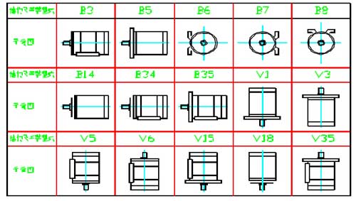 YBX4防爆電機的安裝方式符合GB997《電機結(jié)構(gòu)及安裝型式代號》及IEC34-7 的規(guī)定。本系列電動機有以下5 種基本結(jié)構(gòu)型式:B3—機座帶底腳、端蓋無凸緣;B5—機座不帶底腳、端蓋有凸緣;B35—機座帶底腳、端蓋有凸緣;B14—機座不帶底腳、端蓋有小凸緣;B34—機座帶底腳、端蓋有小凸緣。本系列電動機在上述5 種基本結(jié)構(gòu)上,可派生15 種常用結(jié)構(gòu)及安裝型式見下表: